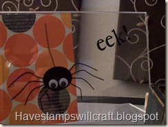 Last year after Halloween I picked up this vinyl spider and ‘eek!’ for a dollar.  I always like the look of all the vinyl words and images you can get at the craft sale but I usually balk at the price.   Luckily this one was marked down from $4.99 to $1.00.  Yep, only one dollar….. mine for that price.